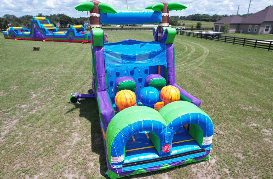 With its towering palm trees, vibrant colors, and exciting features, the 30' Jungle Trek is sure to capture the imagination of young adventurers. They'll navigate through tunnels, climb over obstacles, and slide down thrilling slides, all while experiencing the thrill of an authentic jungle expedition.