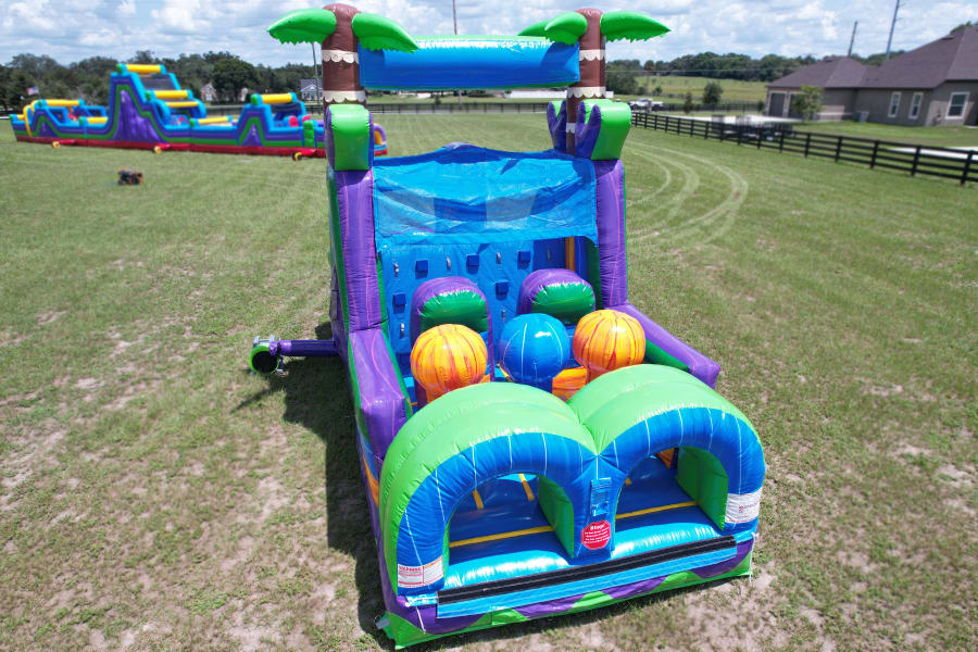 With its towering palm trees, vibrant colors, and exciting features, the 30' Jungle Trek is sure to capture the imagination of young adventurers. They'll navigate through tunnels, climb over obstacles, and slide down thrilling slides, all while experiencing the thrill of an authentic jungle expedition.